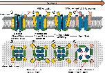 Fig. 5. Proposed activation mechanism and interactions with different functional states in Kv1 channels.The progression to activation is from left to right. In the deepest closed state of the channel, all the VSDs are down, and the SF likely resides in the noncanonical state (1). The closed pore is sealed closed by hydrophobic I470 and V474 (1, 2). Upon depolarization, VSDs transit to an active but not-relaxed state (3). The upward movement of the VSDs creates a pull on the S4-S5 linker, yet since not all VSDs are up, the energetic input is not enough to open the pore (4). In the last closed state before opening, or the pre-open state, all four VSDs move up (5), creating enough pull on the S4-S5 linkers (6). In the case of I384R, the channel is most likely stabilized in this pre-open state with newly introduced salt bridges. From the pre-open state, the last concerted movement happens, and the S6 helices undergo a roll and turn movement, opening up the permeation path and expanding the channel laterally (8). At the same time as the pore opens, the lateral movement of the S4-S5 linker drives the VSDs into a different state, the relaxed state (7). |
