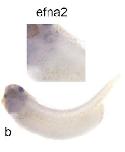 Supplemental Fig. 1. [efna1 and efna2] Expression of genes encoding ephrin-a ligands at stages of pronephric development from kidney field (neurula stages 17-18) to functional pronephros (early tadpole stage 35/36), except for efna3 that is shown in detail in Fig.3. Anterior, dorsal and lateral views are shown at neurula stages (stages 17-18, 20). Only lateral views are shown for tailbud stages 25, 28 and 32. A lateral view with the enlarged pronephric region is shown at early tadpole stage 35/36. From stage 25 onward, low levels of efna1 [and efna4] expression are detected at the level of the pronephric primordium, possibly in the associated developing vasculature. At the early tadpole stage (stage 35/36), efna1 is expressed in the vasculature associated to the pronephric region. .... Expression of efna2 is detected in the Hindbrain (Hb) at stage 35/36. Scale bars: 1.7 mm for whole embryo, 0.5 mm for embryonic magnification. |