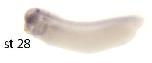 efna4 (ephrin A4) gene expression in X. laevis embryo, assayed whole-mount via in situ hybridization (WISH) at NF stage 28, lateral view anterior left, dorsal up. |