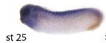 efna4 (ephrin A4) gene expression in X. laevis embryo, assayed whole-mount via situ hybridization (WISH) at NF stage 25, lateral view, anterior left, dorsal up. |