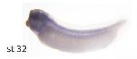 efna3 (ephrin A3) gene expression in X. laevis embryo, assayed whole-mount via situ hybridization (WISH) at NF stage 32, lateral view, anterior left, dorsal up. |