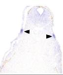 efnb2 (ephrin B2) gene expression in X. laevis embryo, assayed whole-mount via situ hybridization (WISH) at NF stage 15, anterior, lateral view and dorsal views. |