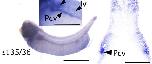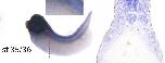 ephb1 (EPH receptor B1) gene expression in X. laevis embryo, assayed whole-mount via situ hybridization (WISH) at NF stage 35 & 36, lateral view, anterior left, dorsal up. Transverse section at level of pronephros. |