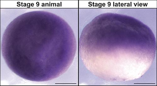 wdr5 (WD repeat domain 5) gene expression in X. laevis embryo, NF stage 9, assayed via in situ hybridization. |