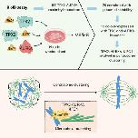 (C) Model for the novel role of KIFC1 in branched MT assembly and spindle organization in cancer cells with centrosome amplification. Top: RanGTP (yellow gradient) promotes the KIFC1-TPX2 interaction near chromosomes, driving RanGTP-dependent branched microtubule assembly (light blue MTs). Bottom: centrosomal KIFC1 (1) cooperates with KIFC1-TPX2-assembled microtubules nucleated from chromosomes (2, light blue) to cluster supernumerary centrosomes in cancer cells. In TPX2- or KIFC1-silenced cells, chromosomal microtubules fail to form, leading to dispersed centrosomes and multipolar mitosis.