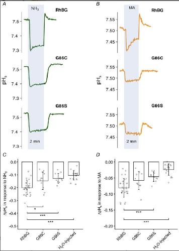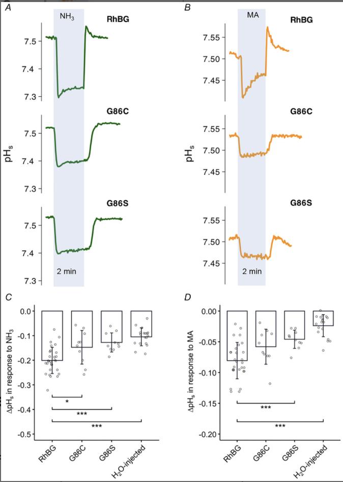 Figure 3. Effects of G86C/S on pHs induced by NH3 and MA