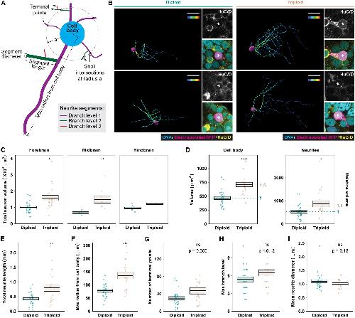 Figure 1 Triploid neurons are larger in volume and extend longer neurites