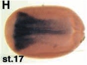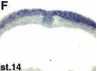 ror2 (receptor tyrosine kinase-like orphan receptor 2) expression in Xenopus laevis, NF stage 17 embryo, dorsal view, assayed by in situ hybridization. |