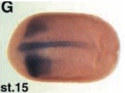 ror2 (receptor tyrosine kinase-like orphan receptor 2) expression in Xenopus laevis stage 15 embryo, dorsal view, assayed by in situ hybridization. |