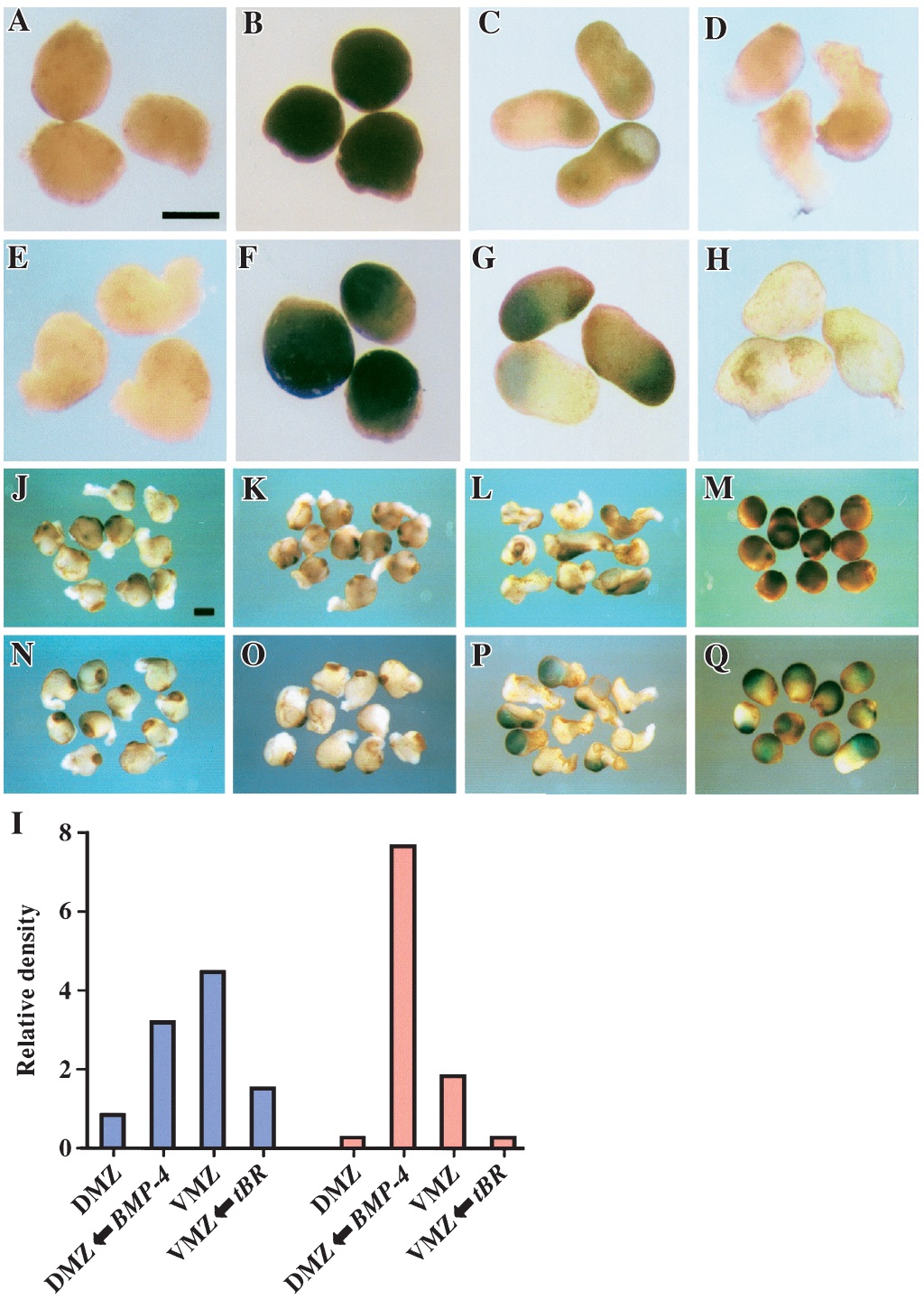 explants that had been injected with 0.5 ng XBMP-4 and 0.05 ng