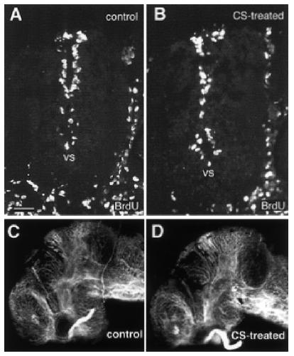 wholemount control (C) and CS-treated (D) brains. Dorsal