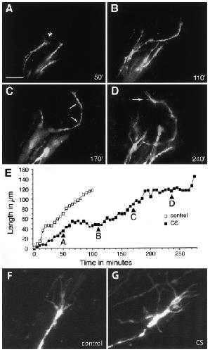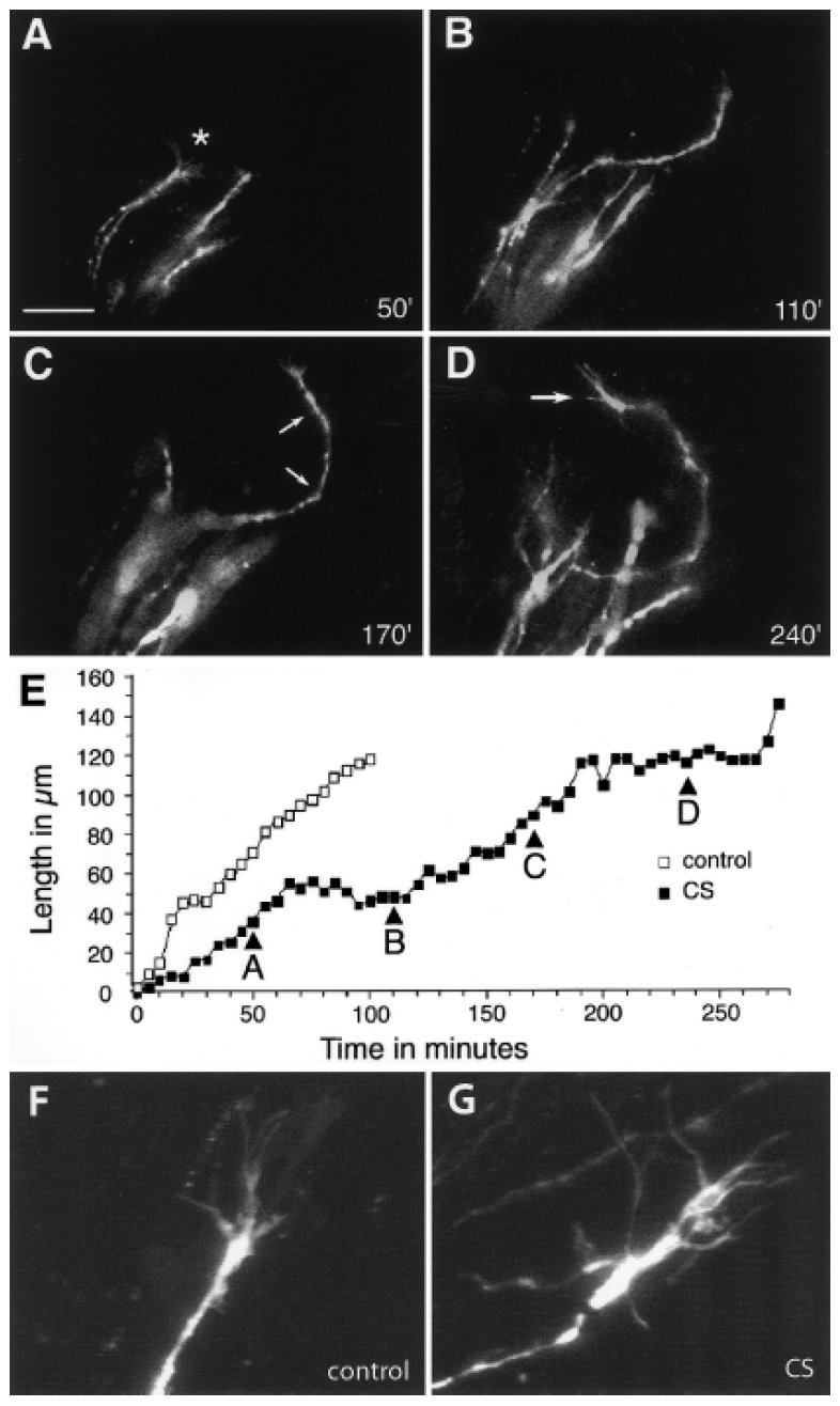 Figure 5 Exogenous CS induces saltatory growth rates and altered growth cone morphology.