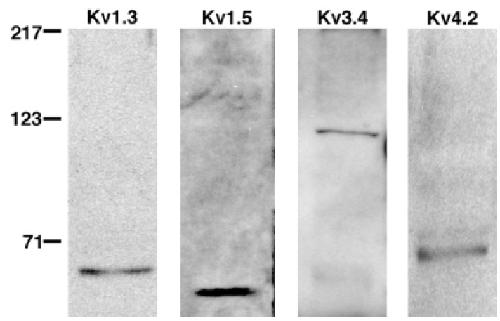 against mammalian Kv subunits. Molecular weights are based on