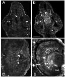 head and optic nerve are brightly labelled. D: Almost no labelling is