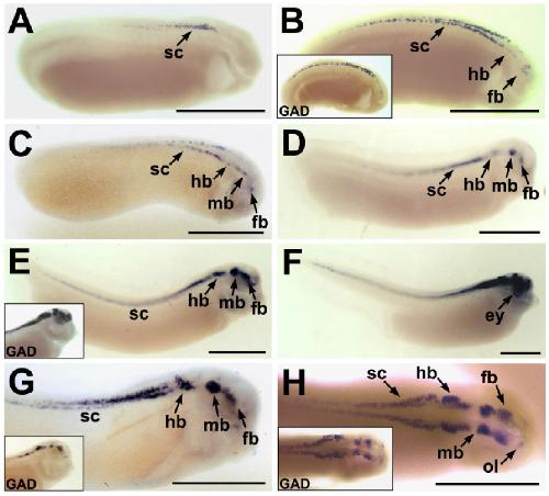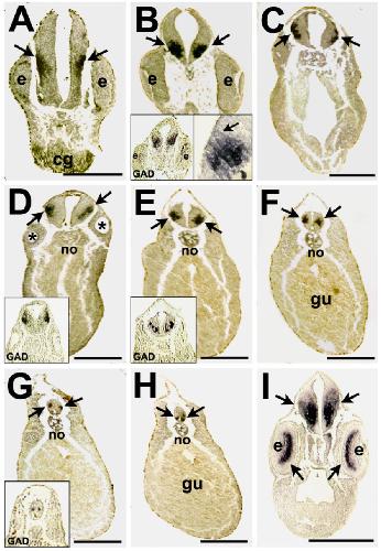 hybridized with the antisense GAD probe. A: Anteriormost xGAT-1