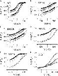 Figure 6. Effect of potential voltage-sensing residue mutations on qa. Mean qa-V relations for (A) WT, (B) R213C, (C) D153K, (D) R167A, and (E) D186A in 0 Ca2+ and 50 μM Ca2+. Solid lines are the fits to the HA model (Table I parameters). Dashed lines represent the WT fit. (F) Foot of the qa-V relations in 50 Ca2+ for WT (•), Y163E (▾), R213C (□), D153K(○), and R167A (▿) are superimposed to show that the limiting value of qa (i.e., zL) is reduced by voltage sensor mutation. Dashed line represents zL for the WT (0.30 e). |