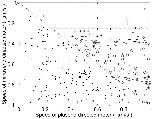 Figure 6. Probing the constraints on the speeds. Each symbol represents one simulation and is plotted here as a function of the unloaded speeds (Vmax) of the two motors in the complex. Dots, S1 produced in screen 3a; circles, S2 produced in screen 3b, in which the motor could stay attached only to growing microtubules; pluses, S2 produced in screen 3c when the motor could stay attached also to shrinking ends.