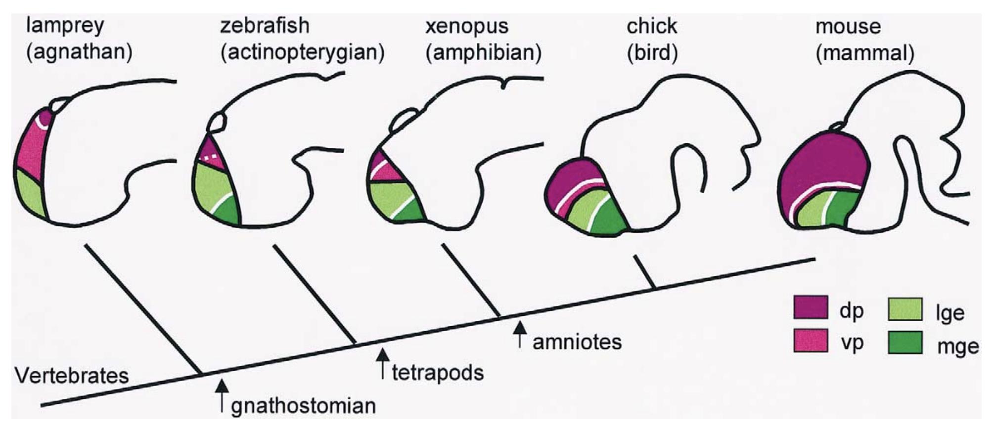 Rohr et al. (2001) and Hauptmann and Gerster (2000), and chick and mouse are adapted from Puelles et al. (2000). For zebrafish the pallial subdivisions are