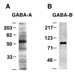 GABA-A (A) and GABA-B (B) receptor protein expression.