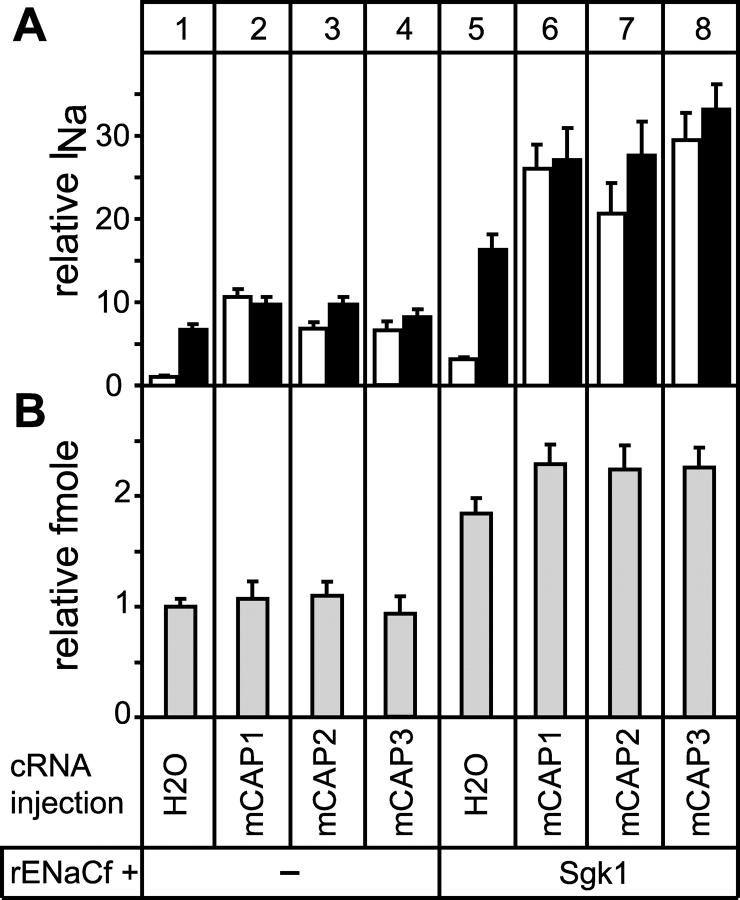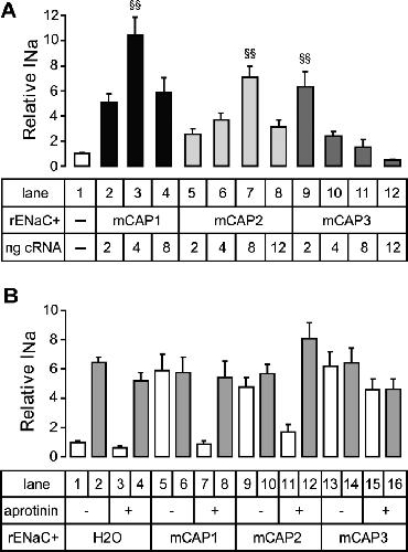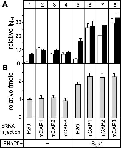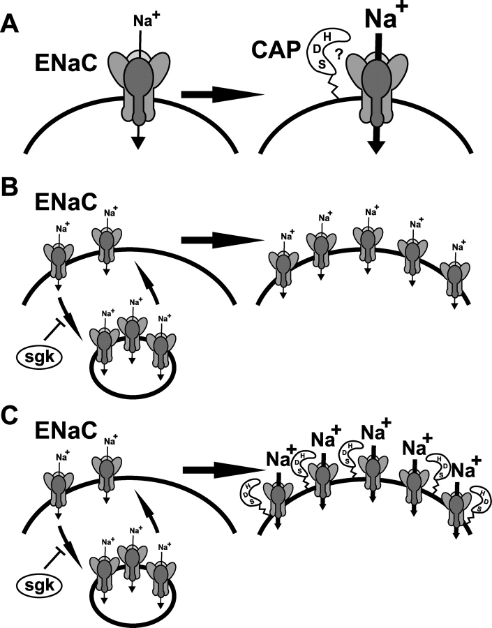 Synergistic activation of ENaC by three membrane-bound channel-activating serine proteases (mCAP1, mCAP2, and mCAP3) and serum- and glucocorticoid-regulated kinase (Sgk1) in Xenopus Oocytes.