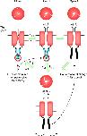 Figure 9. . A summary of rP2X2 permeability changes. The cartoon shows rP2X2 channels in closed and open states of differing diameter across the narrowest region. The narrowest region is shown as the gate. In the Closed and Open 1 state the C tail domain is diagrammatically shown as in a “nonpermissive state” with respect to permeability changes. The present paper shows that a conformational change occurs in the tail as, or before, the pore dilates, and this is hypothetically shown as a motion of the C tail domain away from the inner aspect of the channel, as in MscL channel gating (Sukharev et al., 2001). The model implies the existence of a state where the tail has undergone a conformation change but the pore has not yet dilated. A direct transition from Closed to Open 2 was demonstrated previously for mutant channels (Khakh et al., 1999; Virginio et al., 1999b). |