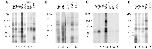 Figure 1. Comparative analysis of proteins that UV crosslink to Eg1, Eg2, Eg5 and c-mos 3'UTRs.32P-labeled transcripts corresponding to the 3' untranslated regions of the RNAs indicated above the lanes were incubated in extracts made from 4 hour (pre-transcription) Xenopus embryos, irradiated with UV light and digested with RNase A. The proteins rendered radioactive by crosslinking to the labeled transcripts were analysed by electrophoresis on 10% polyacrylamide-SDS gels followed by autoradiography. A32P-UTP labeled RNAs; B32P-ATP labeled RNAs; C32P-GTP labeled RNAs; D32P-CTP labeled RNAs. In each panel the sizes of the molecular weight markers are indicated on the left.