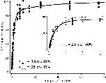 Figure 6. . The slow component of charge return becomes apparent in scatter plots. The fraction of recovered gating charge is plotted as a function of the interpulse duration used in the double pulse protocol. A single exponential fit to all data points yields a time constant of 2.4 ms, but this function gives a poor fit for interpulse durations over 5 ms (inset, dashed line). A double exponential fit with fast and slow time constants of 1.8 and 28 ms and relative weights of 85 and 15%, respectively, fits the data points well (solid line in both figure and inset). This scatter plot contains data recorded in symmetrical 1 K+ + 115 Tris+ solutions from 29 patches containing wild-type channels. |