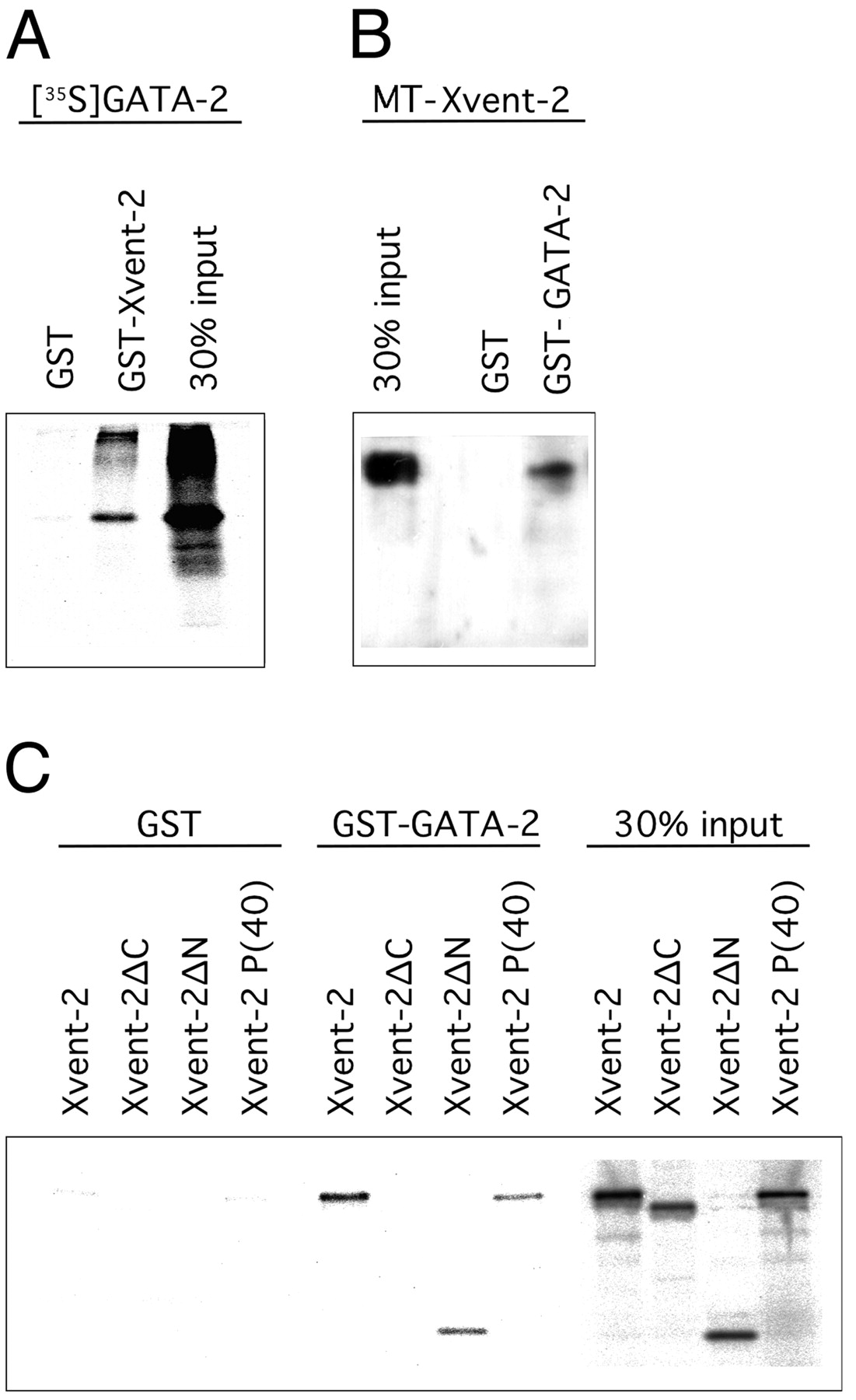 with GST or GST-GATA-2. Bound Xvent-2 was detected by Western