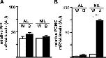 PrP mRNA expression in the neurointermediate and anterior pituitary of black- and white-adapted Xenopus. PrP (A) and POMC (B) mRNA expression levels in the neurointermediate lobe (NIL) and the anterior lobe (AL) of the pituitary of black-adapted (B; black bars) Xenopus compared with those of white-adapted (W; white bars) animals were determined by real-time quantitative RT-PCR. All values were normalized to GAPDH mRNA levels and are expressed as means ± SEM (n = 3). A significant difference is indicated by *** (P < 0.001).