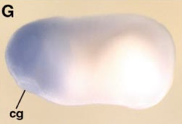 igf1 (insulin-like growth factor 1 (somatomedin C)) gene expression in Xenopus laevis embryo, assayed via in situ hybridization, NF stage 12, dorsal view, anterior down.
