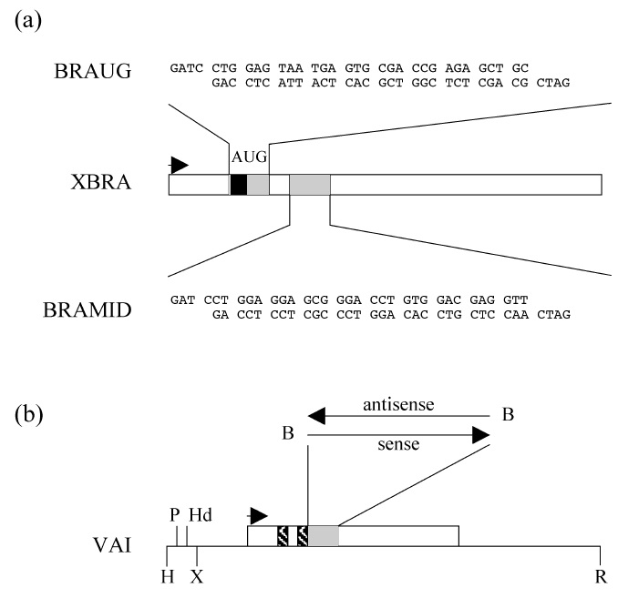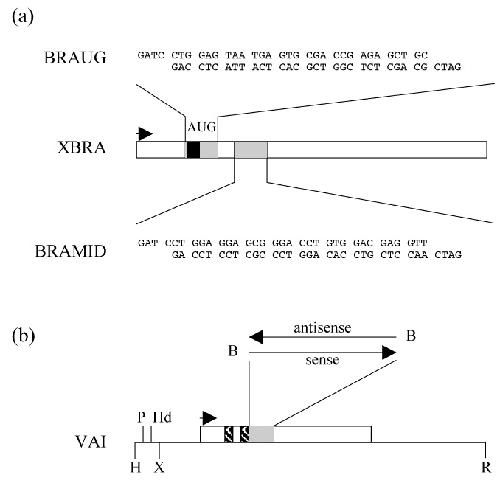 Fig. 1. Sense and antisense vectors. (a) Map of the Xbra