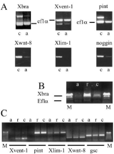 Xbra (r) or uninjected controls (c). (C) Aliquots of the a, r, and c