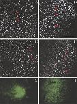 FIG. 2. Cortical rotation in control and Xklp1-depleted prick-activated oocytes. Some sample germ plasm islands have been colored red to compare their movements. Cortical rotation occurs normally in control (A�C) and Xklp1-depleted (D�F) oocytes, but germ plasm does not localize to the vegetal pole in Xklp1-depleted oocytes (F) as it does in the controls (C). Frames shown in (A, B) and (D, E) are 13 min apart. Scale bar, 74 um.