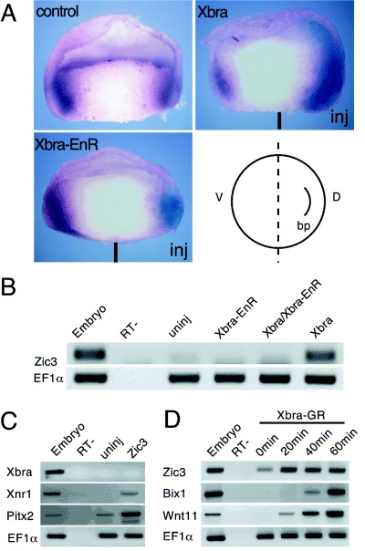 and/or Xbra-EnR (1000 pg). Zic3 was induced by Xbra whereas