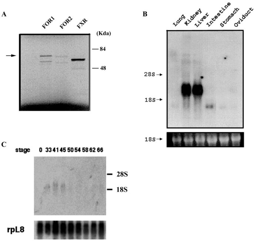 FIG. 3. The expression profiles of FOR in the developing Xenopus