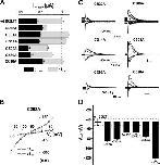 Figure 7. Electrophysiological characteristics of mutants classified in Group C, as compared with wt SGLT1, with and without DTT. (A) Comparison of mutant SGLT1s activities to that of wt SGLT1 and to wt SGLT1 + DTT. Maximal αMG cotransport (Icotr at 5 mM αMG) and Na+ leak (Ileak) currents were measured at −110 mV. The dotted lines indicate the mean expression level of wt SGLT1. n ≥ 5 for each mutant. (B) Off response of presteady-state currents (Pz-sensitive currents in the absence of glucose) of typical oocytes expressing wt SGLT1 exposed to DTT and mutants C255A and C511A. (C) V1/2 of mutant SGLT1s as compared with that of wt SGLT1 (filled bars) and to wt SGLT1 and mutants exposed to DTT (open bars). The dotted box represents the interval for which V1/2 of a mutant would not be significantly different from that of wt SGLT1. (D) Time constants of the slow component of presteady-state currents for mutants of Group C. The curves represent the time constants evaluated with a four-state model of presteady-state currents with parameters described in Table I. Errors are SEM. |