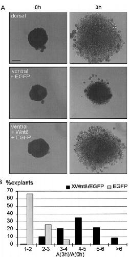 untreated dorsal explants. Bar: 100 mm. (B) Area ratio of 45 EGFP