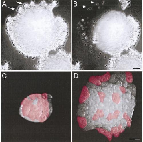 (arrows). (B) Explant 1 min later, after a collapse, with fragments of