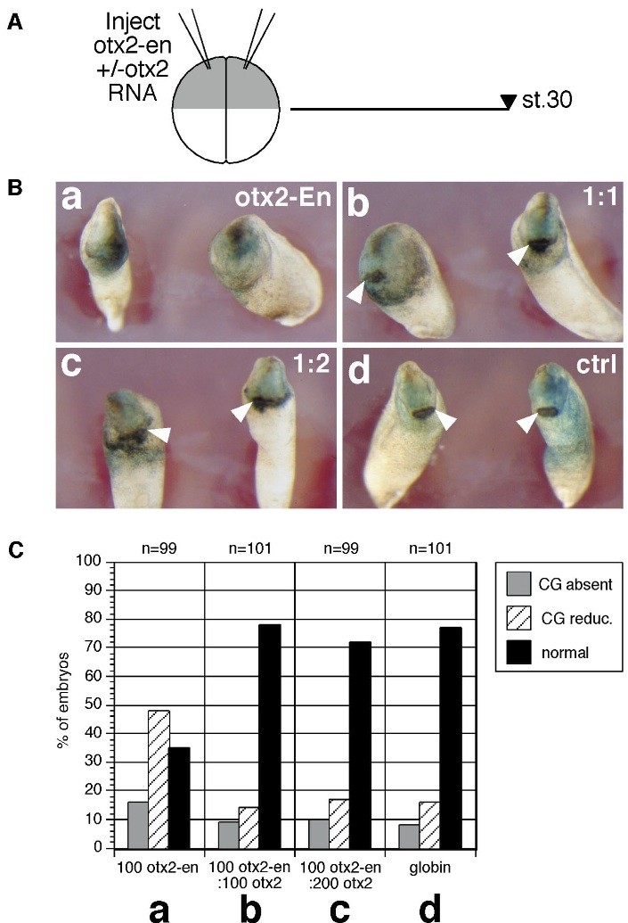 two-cell stage were injected with 200 pg otx2-En or 200 pg globin
