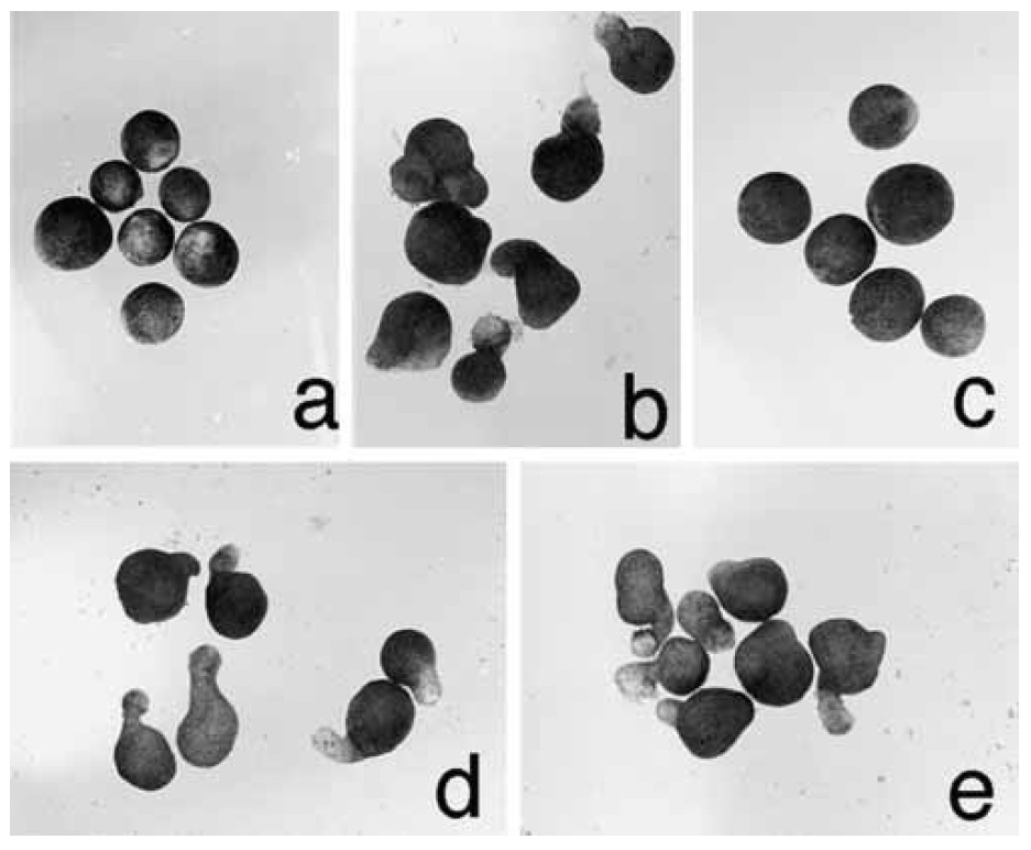 caps of control non-injected embryos (1) and of embryos injected