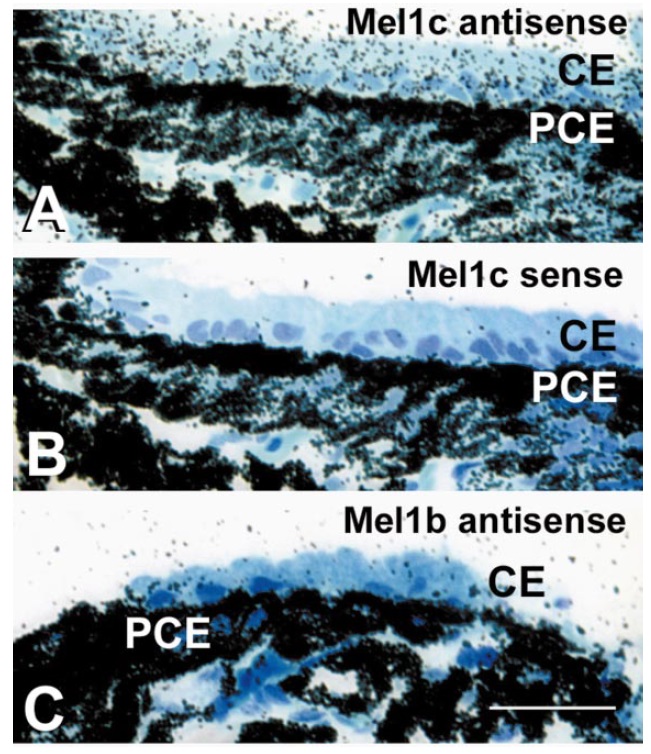 with Xenopus Mel1c melatonin receptor antisense riboprobe,