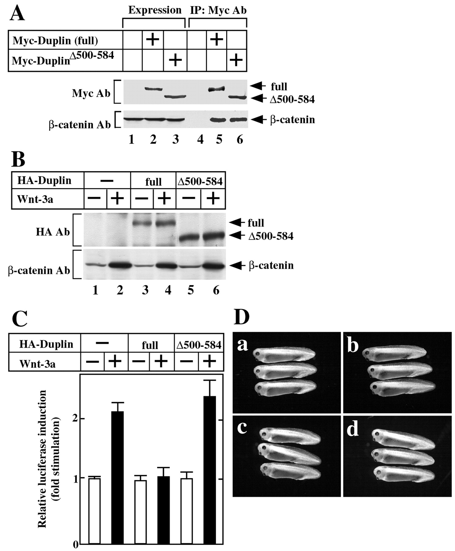 signaling. A, complex formation of Duplin mutants with -catenin. The