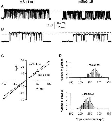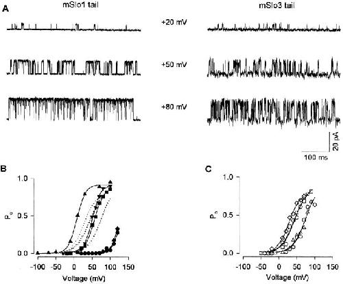 Gating and conductance properties of BK channels are modulated by the S9-S10 tail domain of the alpha subunit. A study of mSlo1 and mSlo3 wild-type and chimeric channels.