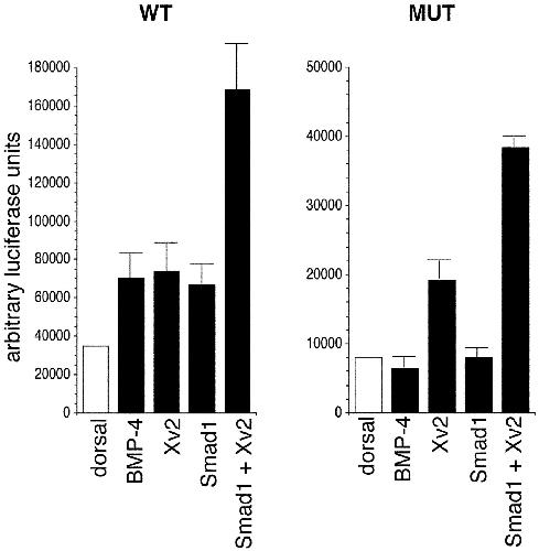 FIG. 4. Xvent-2B and Smad1 cooperatively activate the
