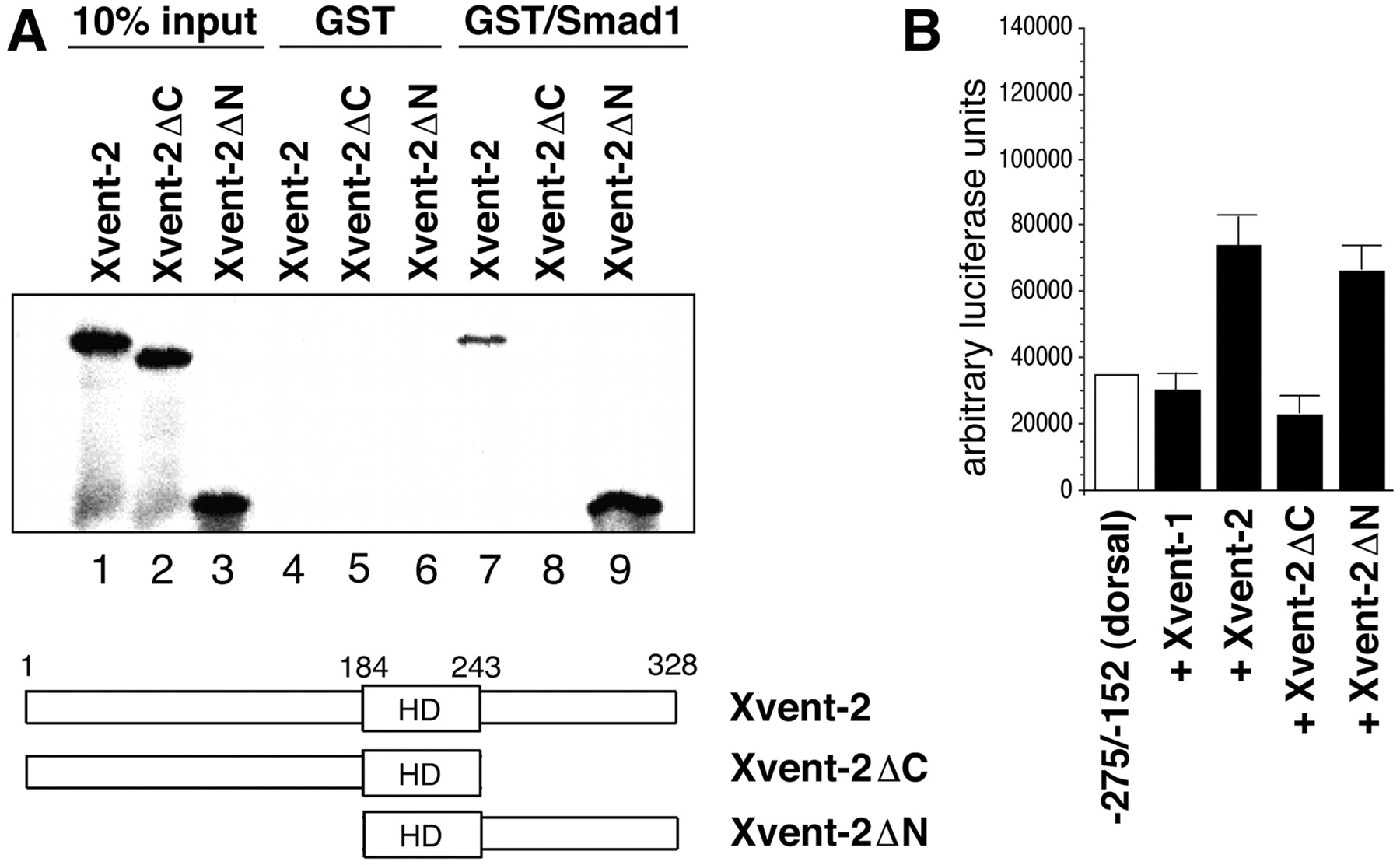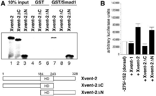with Smad1 and for transcriptional activation. A, Xvent-2 proteins