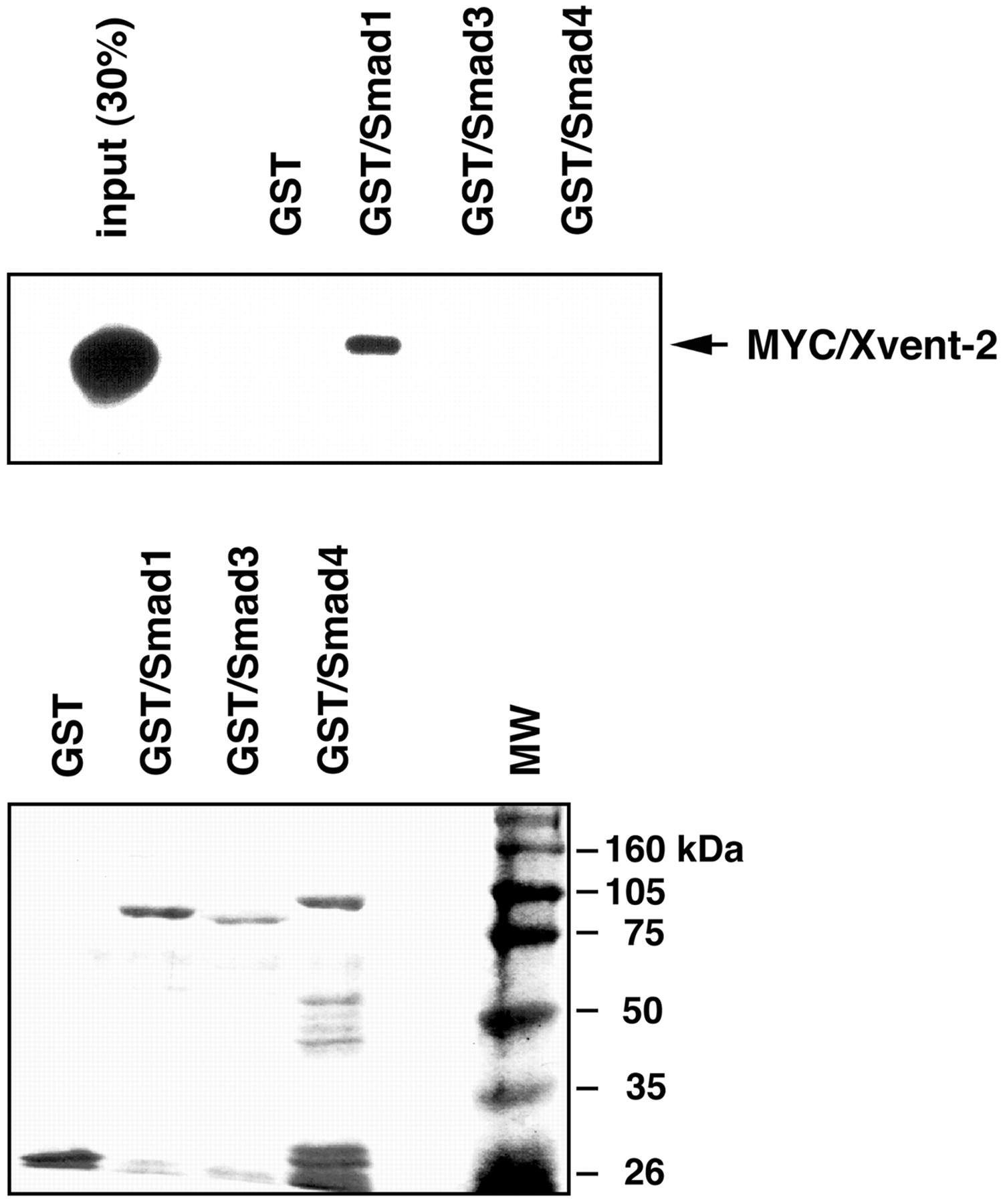 FIG. 6. Interaction of Smad1 and Xvent-2 is direct. Smad proteins