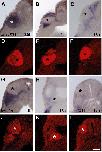 Fig. 6. Inhibition of migration alters neural crest marker expression. (A-C) twist in situ hybridisation of grafts expressing Xcad-11 0.5 hours (A), 4 hours (B) and 18 hours (C) after transplantation. GFP-Myc immunostaining of the corresponding sections shown in (D-F). δcXcad-11 overexpressing graft 4 hours (G) and 18 hours (H) after transplantation, all stained with twist in situ hybridisation probe. (I) Xcad-11-expressing graft 18 hours after transplantation stained with Snail in situ hybridisation probe. (J-L) GFP-Myc immunostaining of the corresponding sections. Asterisk marks the graft centre. Scale bar: 50 μm.