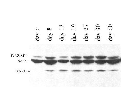 Figure 5. Western blot analyses of the expression of DAZAP1 and DAZL in mouse testes during postnatal development.