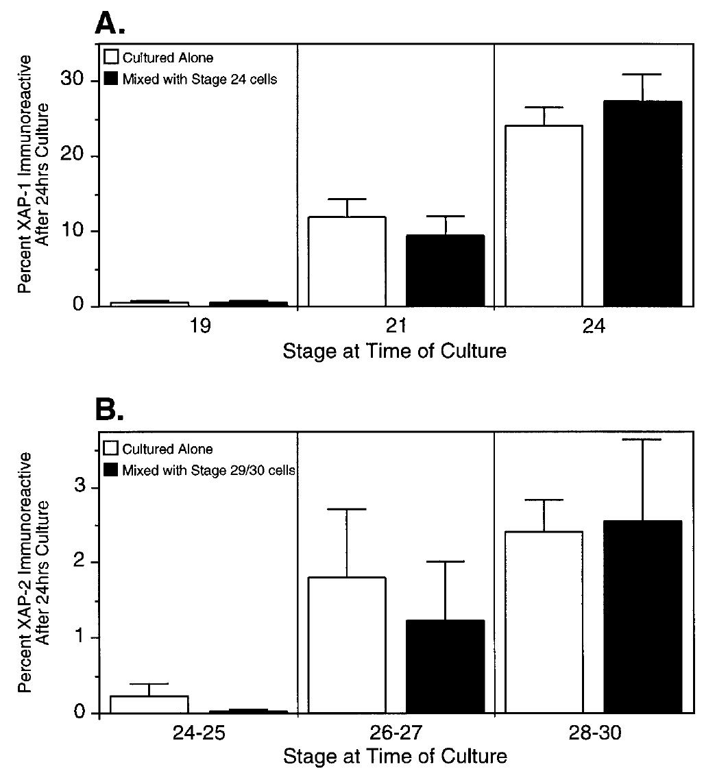 (open bars) or when mixed with older cells (black bars). XAP-1 is expressed earlier than XAP-2.