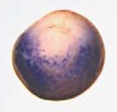 ventx1.1 (VENT homeobox 1, gene 1) gene expression in Xenopus laevis embryos, NF stage 11, as assayed by in situ hybridization. vegetal view: dorsal up.